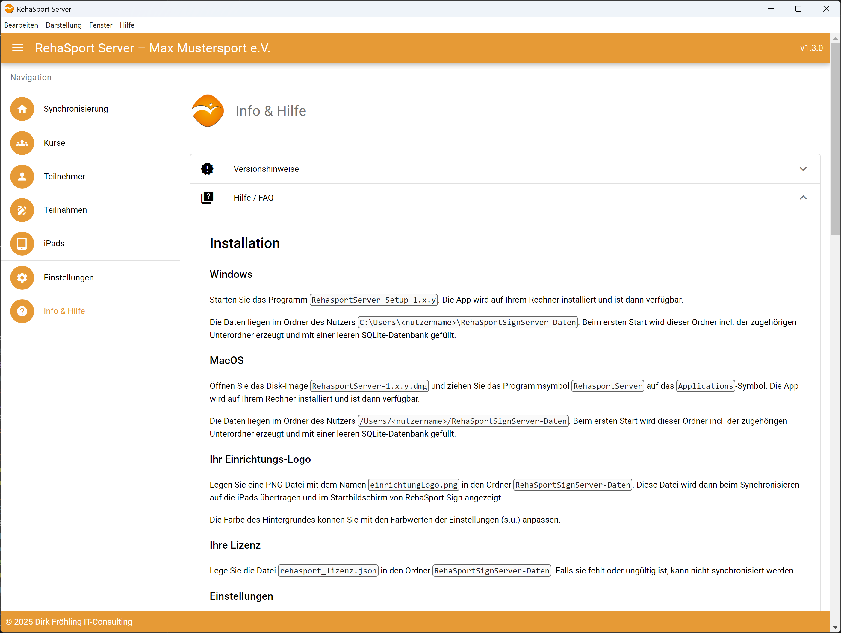 RehaSport Desktop kann ohne ein weiteres Backend genutzt werden, ist aber nur auf macOS lauffähig. RehaSport Server kann nur zusammen mit THEORG verwendet werden, läuft aber auf Windows, macOS und Linux. Für Details siehe die Systemüberblick-Seite.